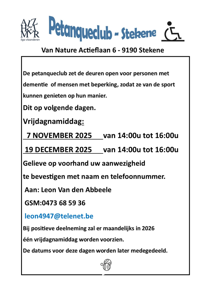 Petanqueclub Stekene zet de deuren op voor mensen met dementie of beperking